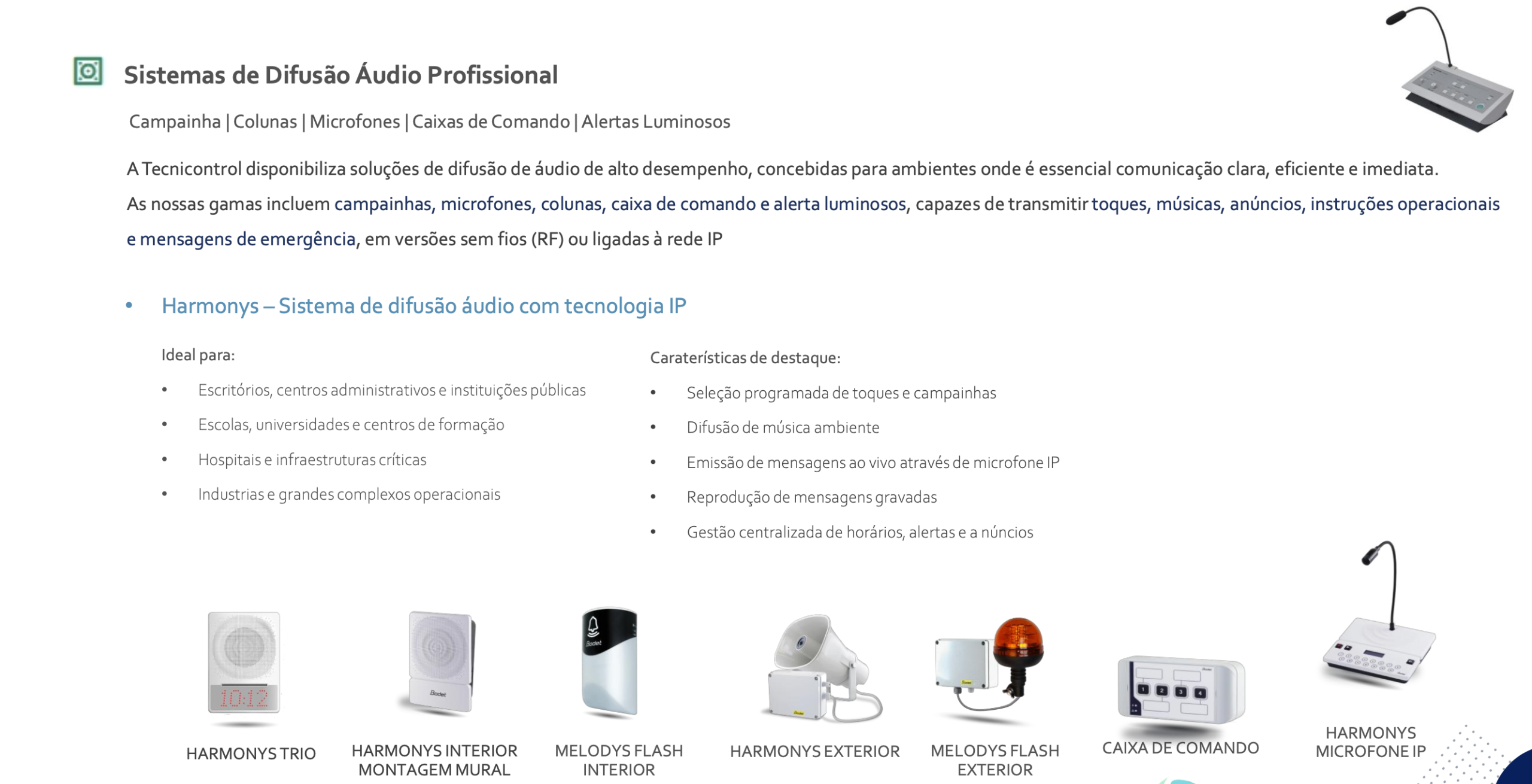 A Tecnicontrol disponibiliza soluções de difusão de áudio de alto desempenho, concebidas para ambientes onde é essencial comunicação clara, eficiente e imediata.